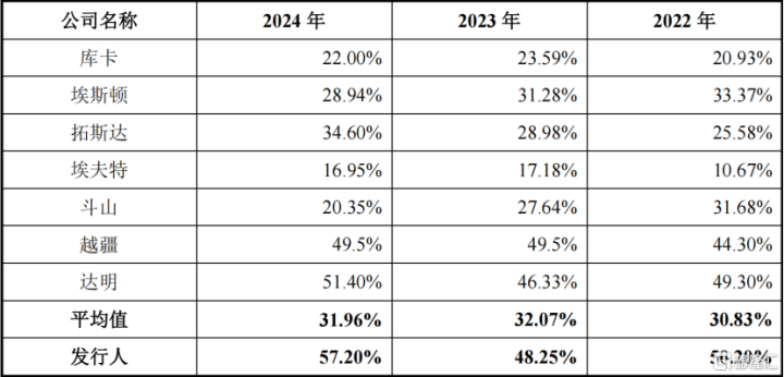公司与同行业可比公司主营业务毛利率对比情况,图片来源招股书